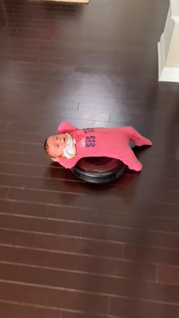 Watch Cute Baby Rides A Robot Vacuum Cleaner By Newsflare On Dailymotion Here Robot Vacuum Cleaner Robot Vacuum Robot